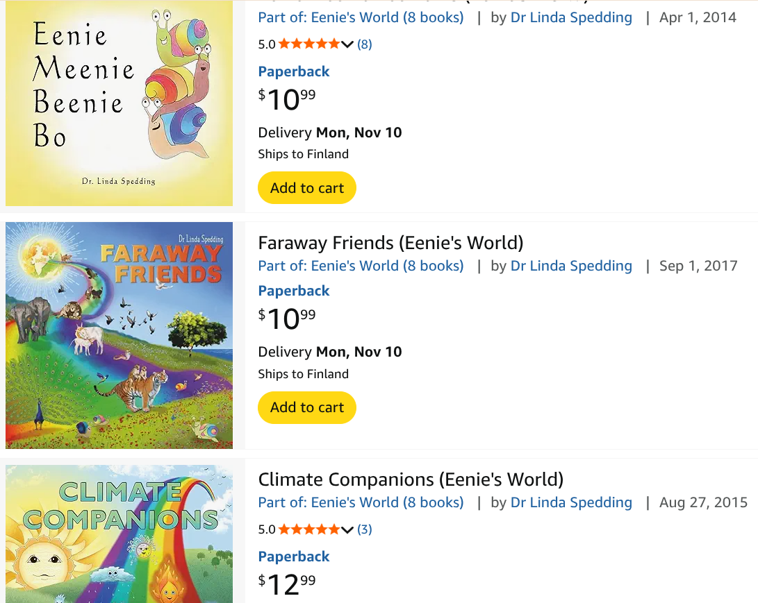 Supporting Linda’s work is easy through amazon.com Eenie’s World book store and via eeniesworld.com pages! Supporting Sini’s work is easy via holvi.com/shop/totheoceans